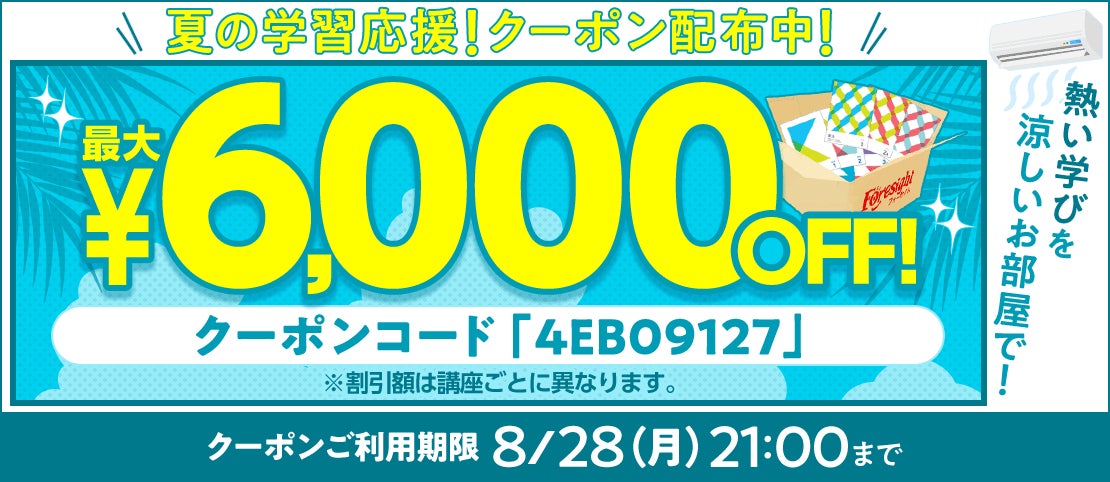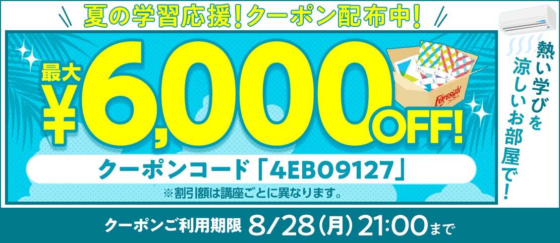 【期間限定】夏の学習応援!誰でも使える割引クーポン 配布中!