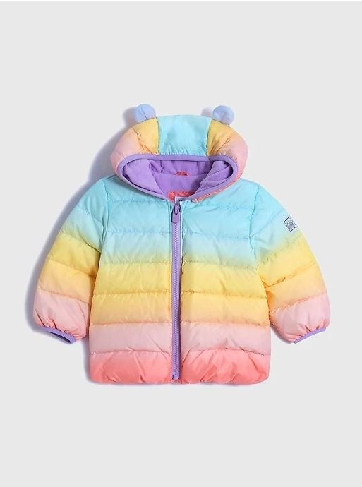 キッズは、ユニセックスでダウンジャケットを展開し、ウォッシャブルで洗えるのも魅力です。カラーは、ホワイトやブラックなどのベーシックカラーから、メタリックなシルバーやピンク、ブルーなど毎年人気のGapらしいカラーも揃い、豊富なラインナップで展開します。ライトウェイトダウンは2つの色柄が楽しめるリバーシブルタイプの他、シェルパやコーデュロイ素材のジャケット、パフスリーブのデニムジャケットなど、大人顔負けのデザインでおしゃれなアウターが登場します。ベビーは、フード部分に耳のデザインが施された遊び心あるダウンパファージャケットや、コーデュロイのジャケット、シェルパやパファーのオールインワン、スノースーツなどギフトにも最適なアウターが充実します。