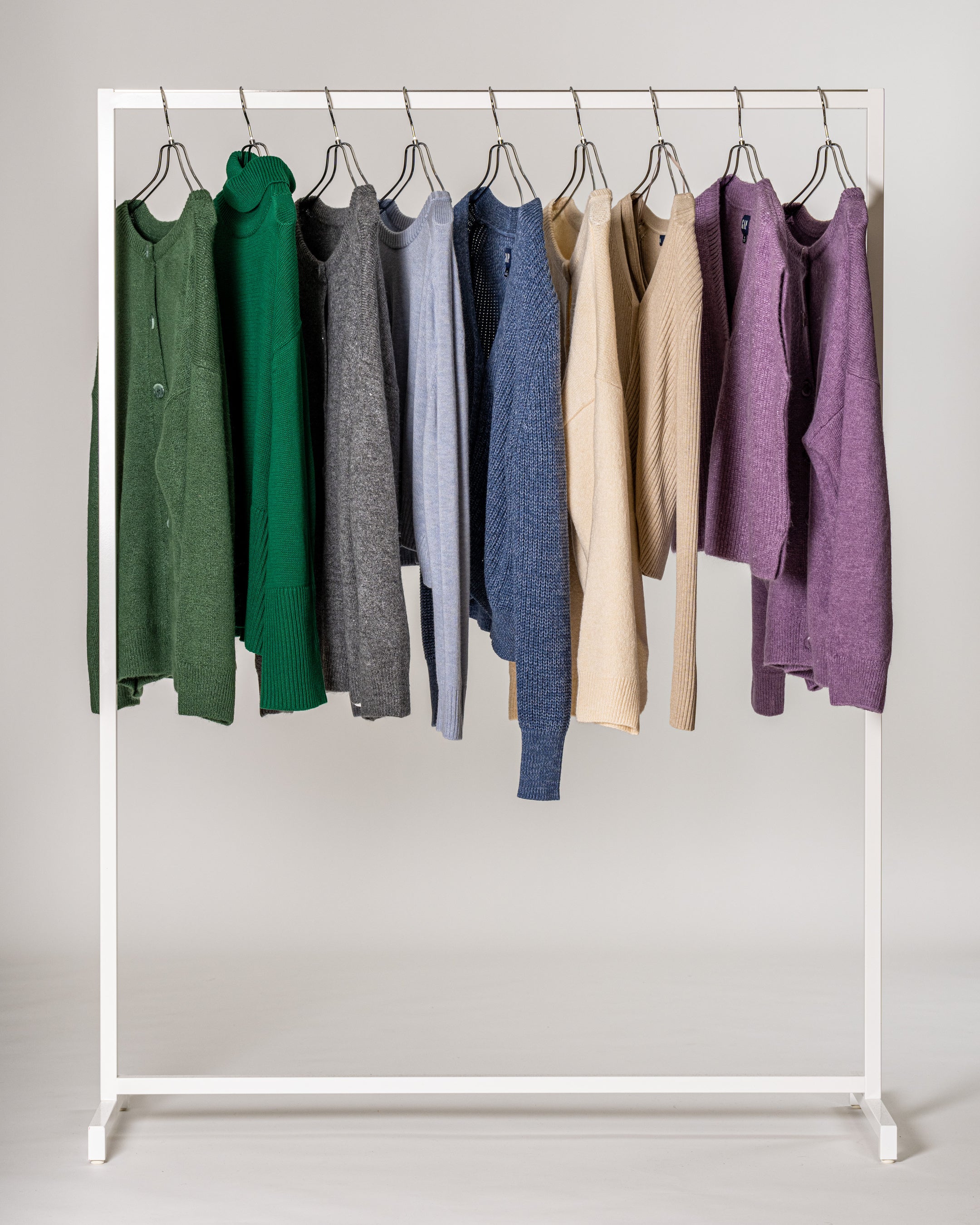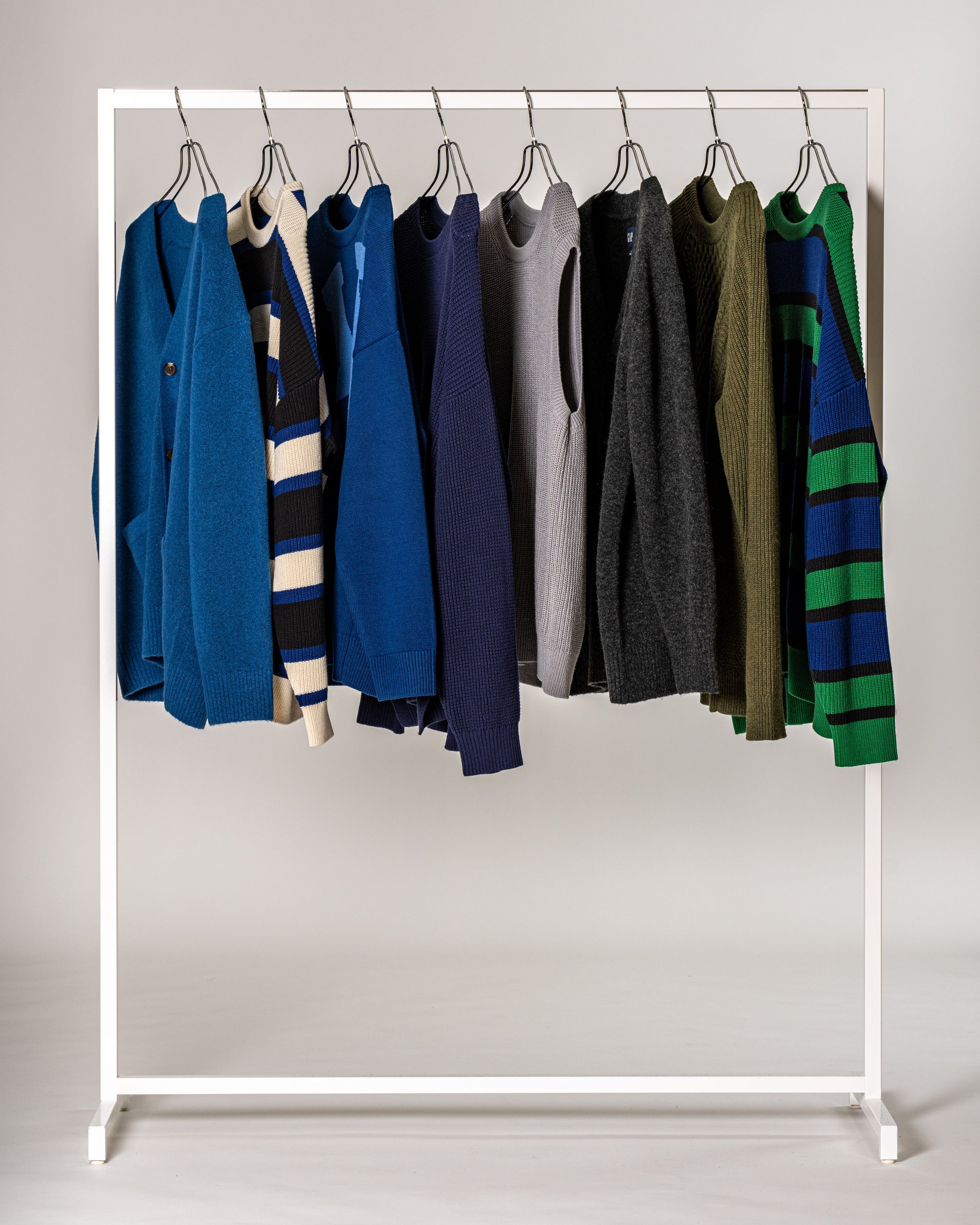 セーターコレクションからは、コットンや合成糸を使用したライトウェイトのハイゲージ、ざっくり編み込まれたボリューム感のあるヘビーウェイトのローゲージなど、様々な素材で展開します。デザインは、クルーネックやVネックセーター、ベスト、カーディガン、セットアップなど幅広いラインナップで揃い、着心地のみならず洗練さも兼ね備えた、秋冬の定番として欠かせないセーターをお届けします。