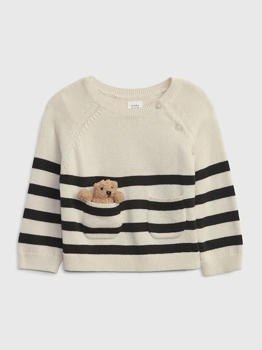キッズは、ファミリーでお揃いができるGAPロゴセーターをはじめ、Gapのアイコンキャラクターであるブラナンベアの刺繍が胸元に施されたケーブルニットのベストや、シルエットがフロントに大きくデザインされたセーターなど、ブランドを象徴するロゴやブラナンベアのデザインが充実します。ベビーは、ブラナンベアが施されたセーターやカーディガン、耳付きのセットアップ、帽子とトップス、ボトムスがセットになった3点セットなど、Gapらしい遊び心あるデザインが豊富に揃います。