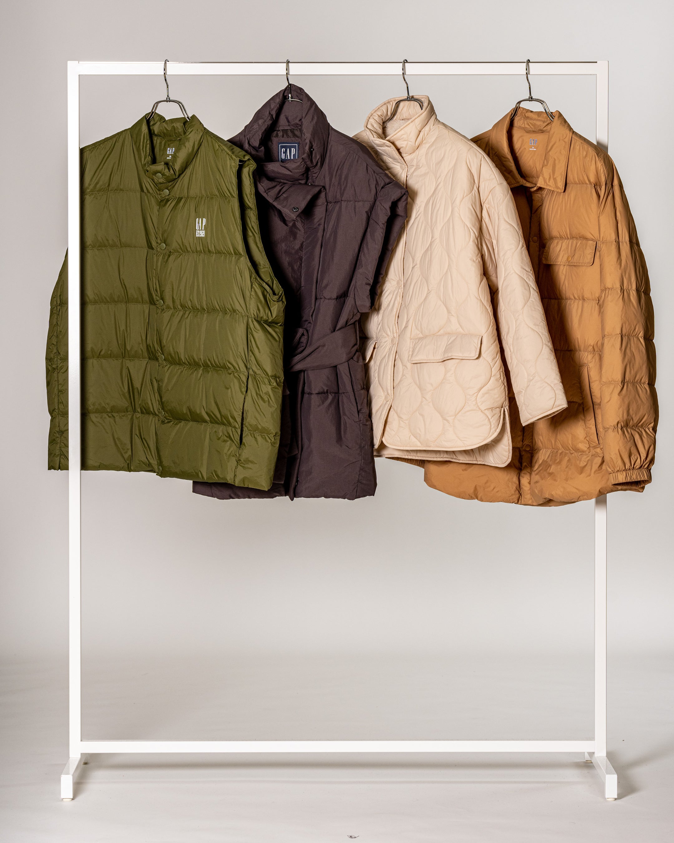 メンズは、ライトウェイトのダウンジャケットから、ヘビーウェイトのショート丈ダウンパーカー、ロング丈のダウンコートまで豊富なバリエーションで展開。注目のGAPロゴがバックに大きくプリントされたショート丈のダウンジャケットは、ブラック、ネイビー、ホワイトの3色展開で新しく登場します。ウィメンズは、ライトウェイトのオニオンキルティングのダウンジャケットをはじめ、ヘビーウェイトのダウンジャケットがショートからミディアム、ロング丈まで揃い、カラーもマットからメタリックまでバリエーション豊かに展開します。シェルパ素材のコートは、スタンドカラーが特徴的なデザインから、ドロップショルダーのミディアム丈のデザインも登場。フェイクレザーのジャケットは、同素材のスカートとセットアップとしても活躍できる汎用性の高いアイテムです。
