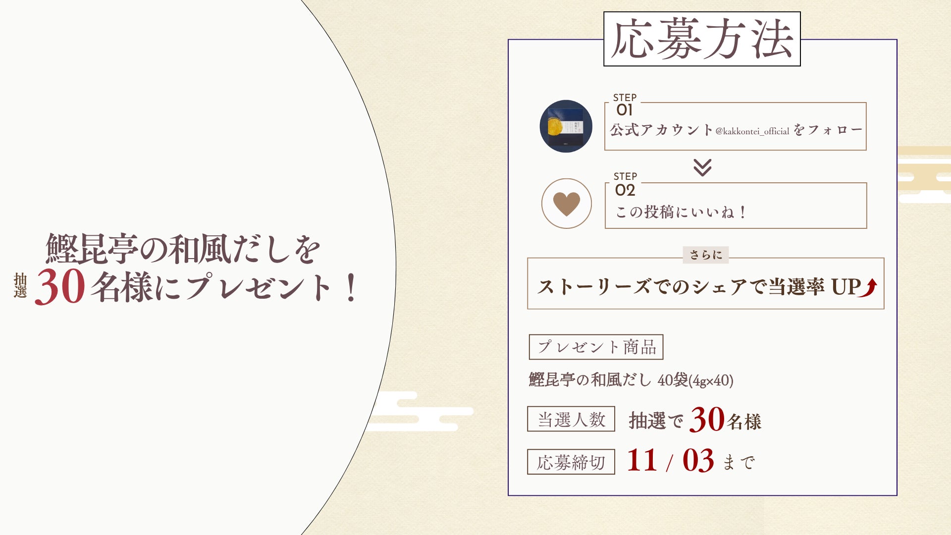 キャンペーン名:『鰹昆亭の和風だし』アカウント開設記念プレゼントキャンペーン