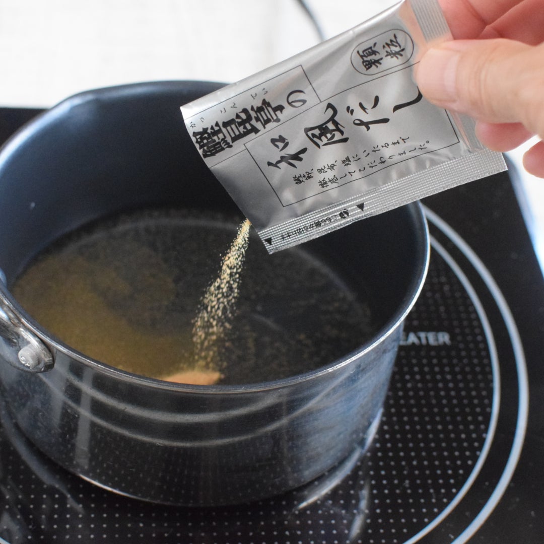顆粒タイプで、水やお湯にサッと溶かすだけで、手軽に料亭のような深い味わいに。