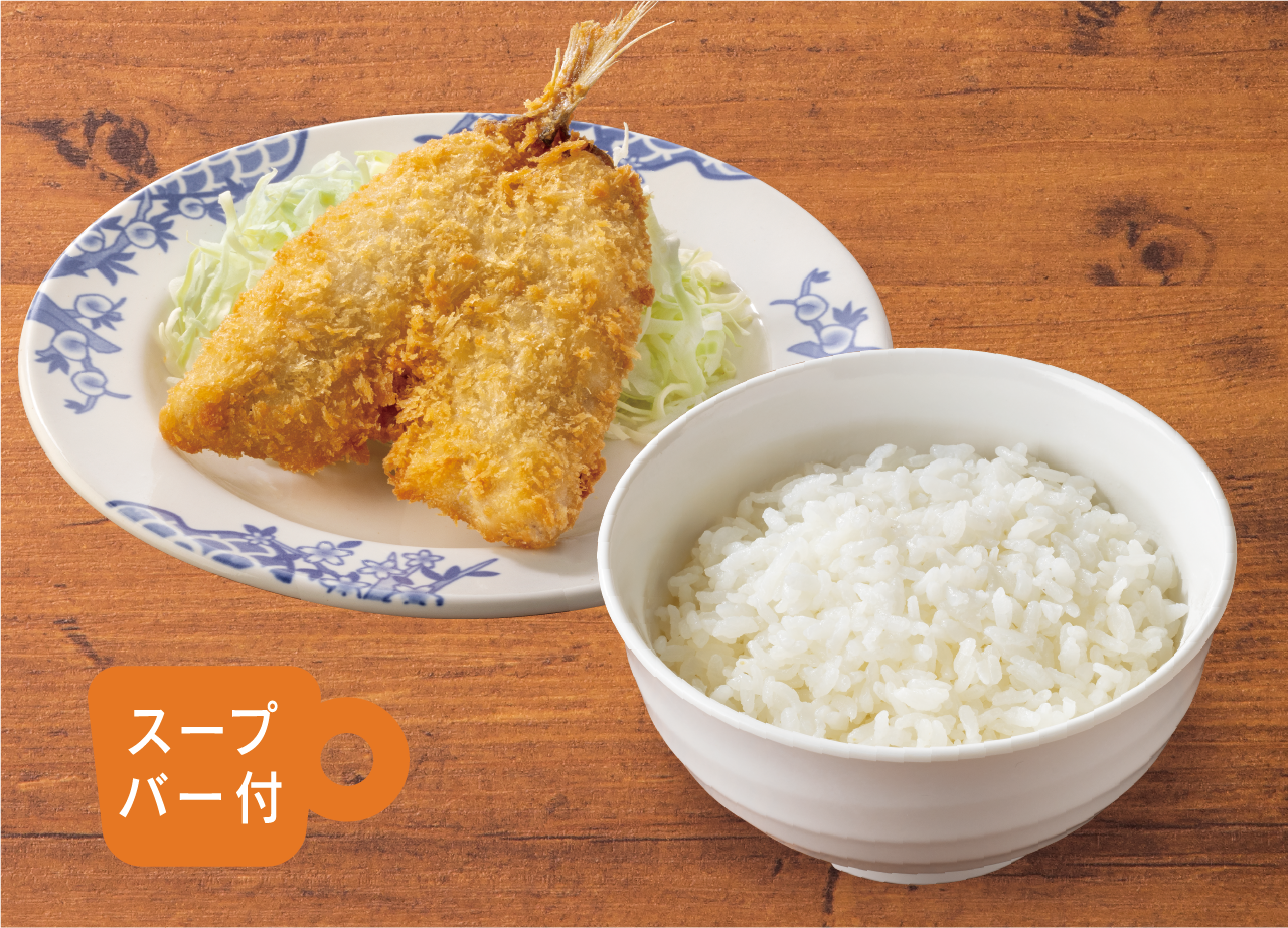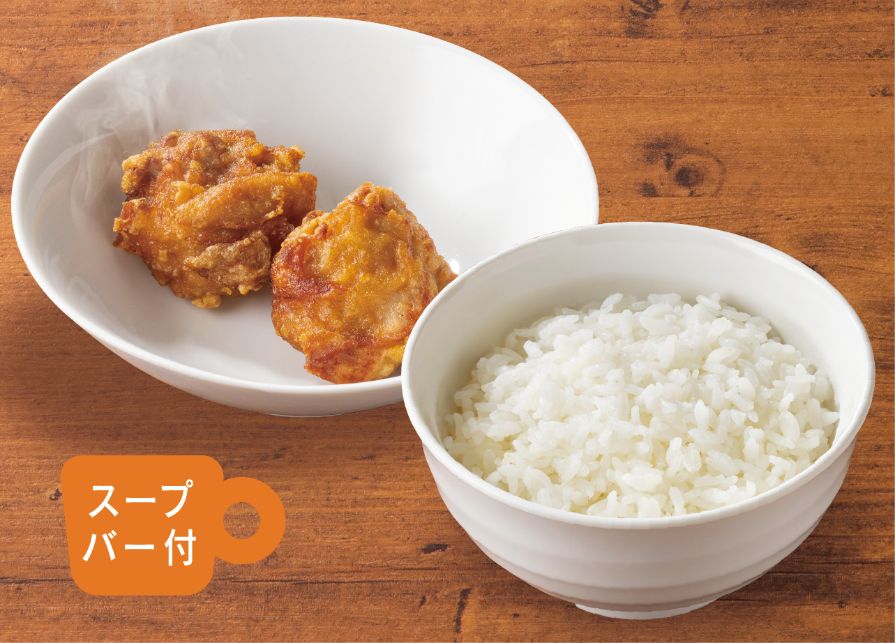 スープバーも付いてお得!麺セットのごはんはオープンから17時までいつでも大盛り無料!(※)