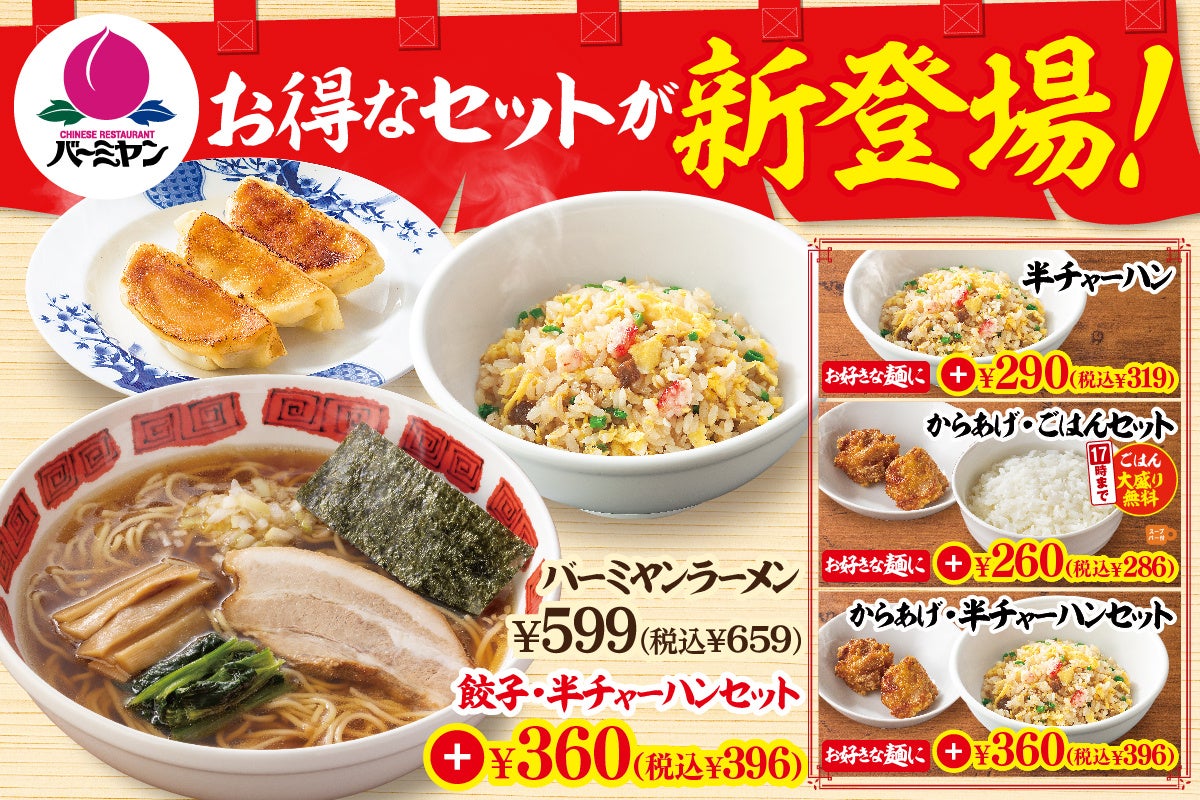 【バーミヤン】お得な「麺セット」が新登場!人気の「半チャーハンセット」も復活