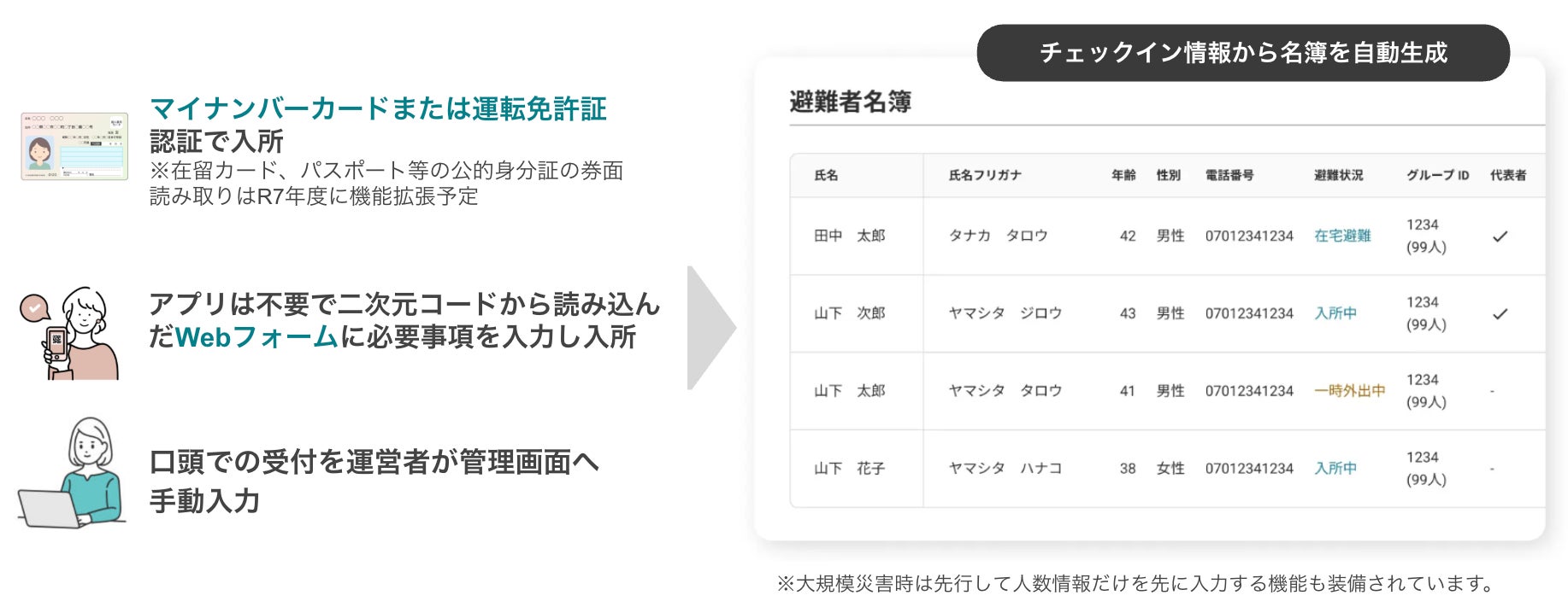 ③口頭による受付:避難者が口頭で伝えた情報を運営者が管理画面に入力