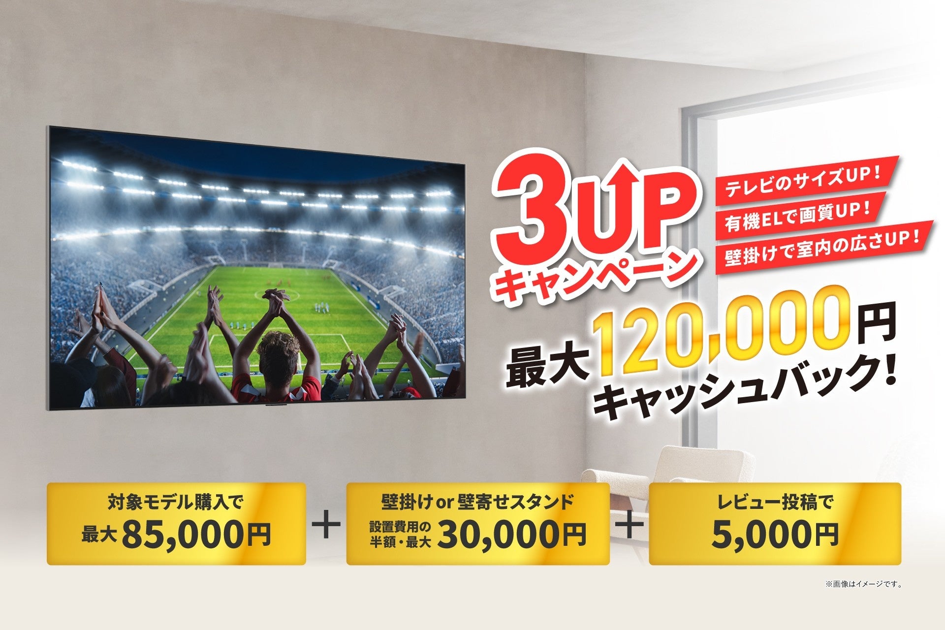 LGエレクトロニクス・ジャパン株式会社(代表取締役:孫 成周(ソン・ソンジュウ) 本社:東京都中央区)は、有機ELテレビの2025年モデルを発売するのを記念し、対象モデルのご購入で最大12万円をキャッシュバックする『3UPキャンペーン』を本日2025年7月1日(火)より実施します。