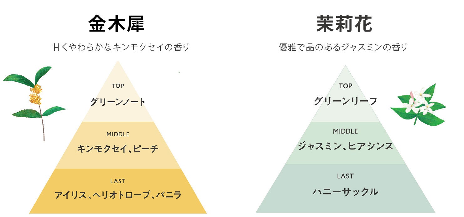 ※金木犀:モクセイ花エキス(保湿成分)、茉莉花:ジャスミン油(保湿成分)配合