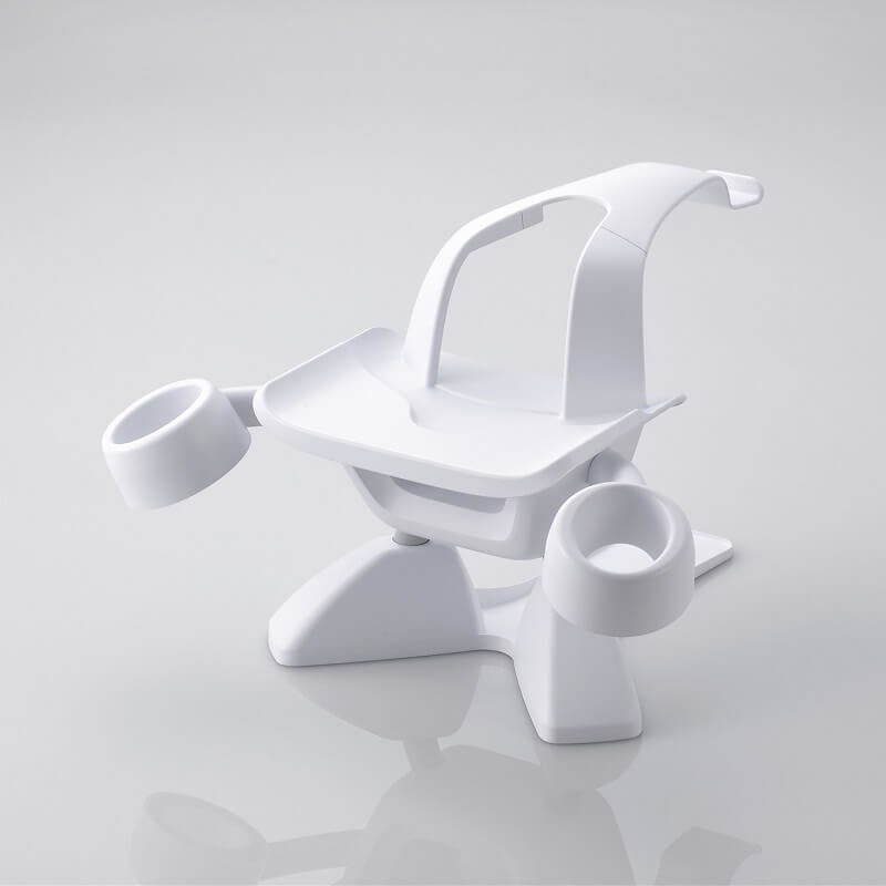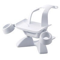 “スタンド”は、置くだけで簡単に片付けができる専用の収納スタンドで、かわいらしく愛嬌のあるデザインに仕上がっています。ご使用になっているバンドの形状に合わることができる2種類のアダプターが付属します。いつでもさっと取り出してすぐにVRを楽しめます。