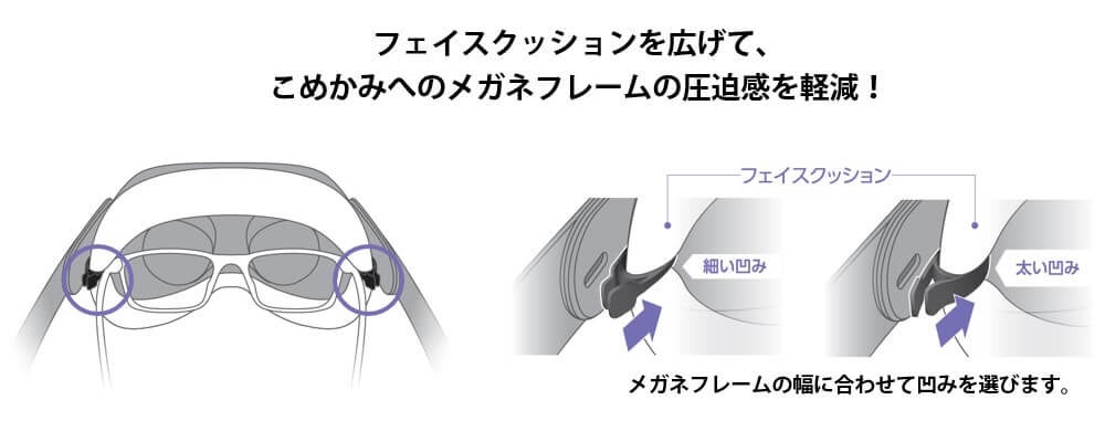 - メガネを掛けたままのプレイでも快適“メガネフレーム回避クリップ”