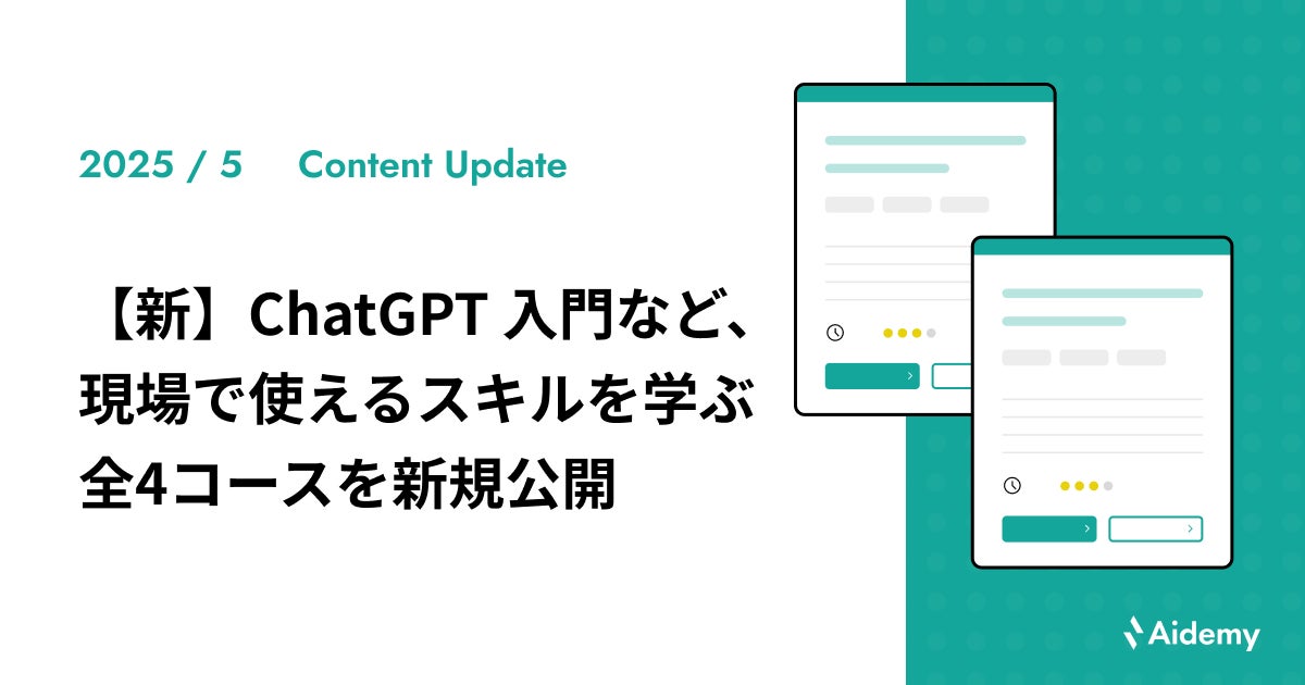 「【新】ChatGPT 入門」など、現場で使えるスキルを学ぶ 全4コースを新規公開