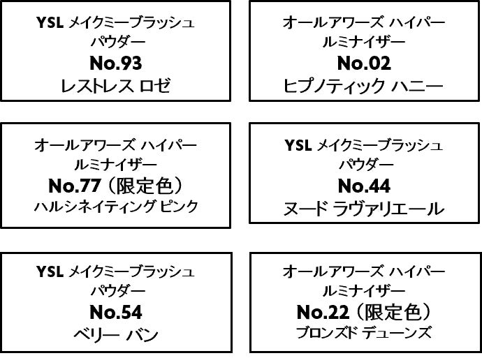 「YSL メイクミーブラッシュ パウダー」のミルキーピンク「No.44 ヌード ラヴァリエール」や