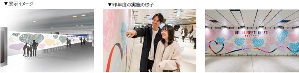 また、「HEART COLLECT」では、事前に実行委員会から大阪市北区内の学校や企業を対象に梅田での思い出エピソードなどを書いたハート型のメッセージシールを募集し、JR大阪駅構内で1つの作品として展示します。各マルシェ会場でも当日来場の皆様にメッセージをご記入いただき、作品の一部とします。そのほかにも48施設が連携してイルミネーションやハート装飾で梅田のまちを彩る「HEART SPOT」では、SPOTを撮影した写真をSNSに投稿すると抽選で素敵な賞品が当たるハッシュタグキャンペーンを開催します。