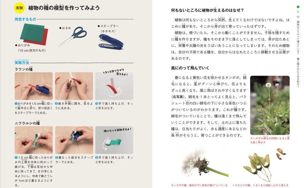 「虹はどうしてできるの?」「お風呂で温かいお湯が上、冷たいお湯が下にくるのはなぜ?」など、日常の中で出会う「不思議なこと」を実験で解き明かしていきます。「へぇ〜、おもしろい」と思いながら読み進めることで、知識のみならず、自分で考える力、問題を解く力がつきます。