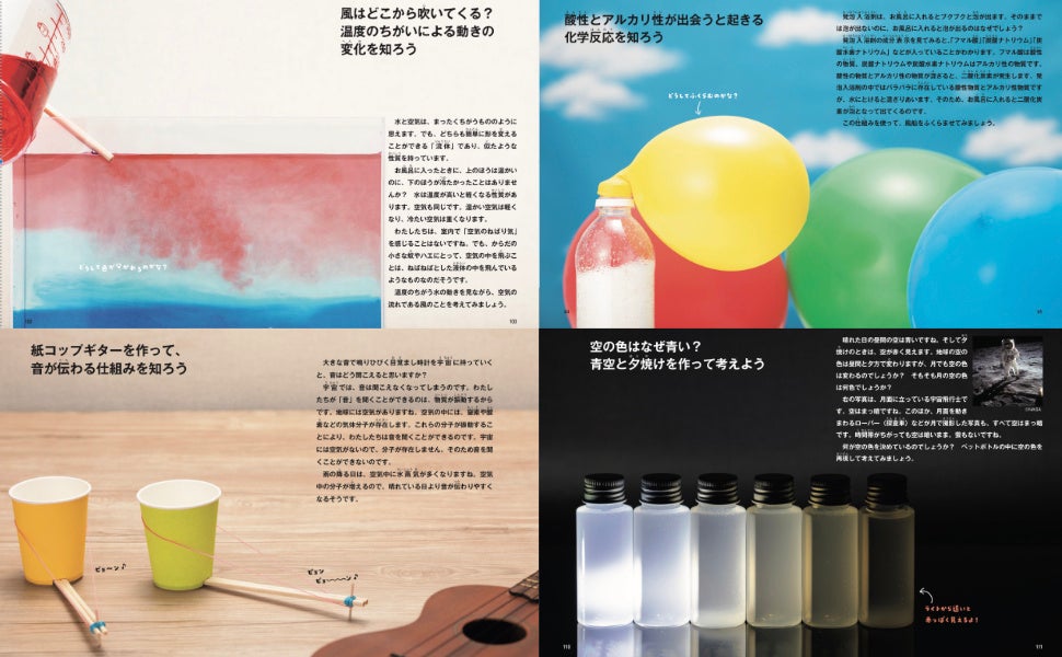 「空の色はなぜ青い?」「シャボン玉が落ちずに浮かび続けるのはなぜ?」などの疑問に対する答えを、美しい実験写真で解説。理科が苦手でも、知識ゼロからでも大丈夫。「知らなかった、もっと知りたい!」という気持ちを大人自身が感じながら楽しめます。