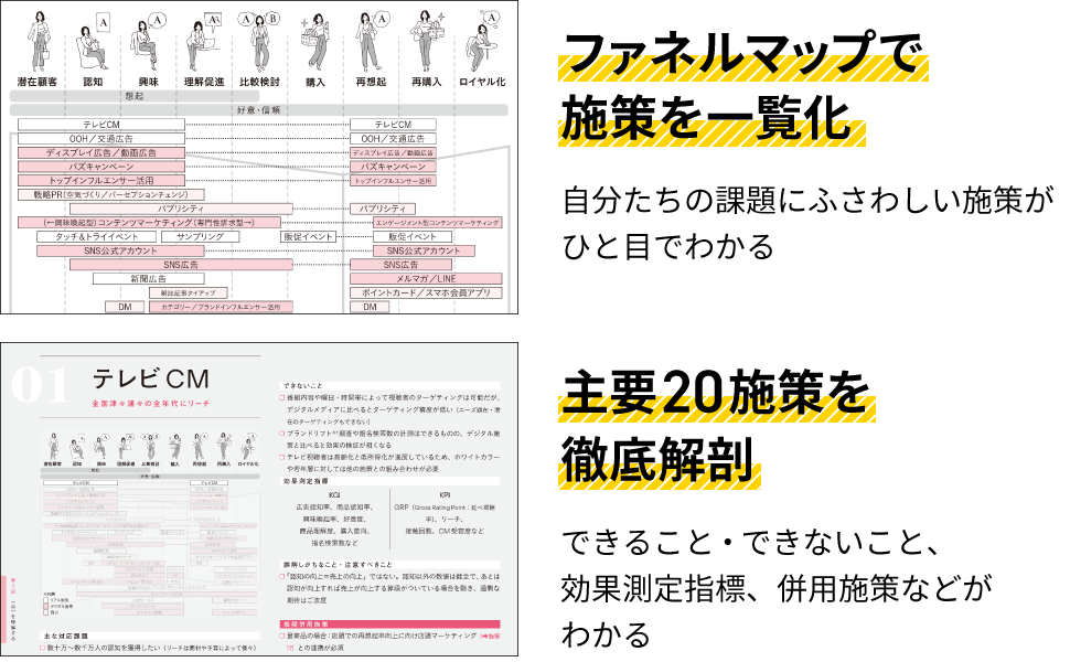 巻頭の折り込みとして、「マーケティングコミュニケーションのファネルマップ」と「売上の地図_v3」も掲載しています。