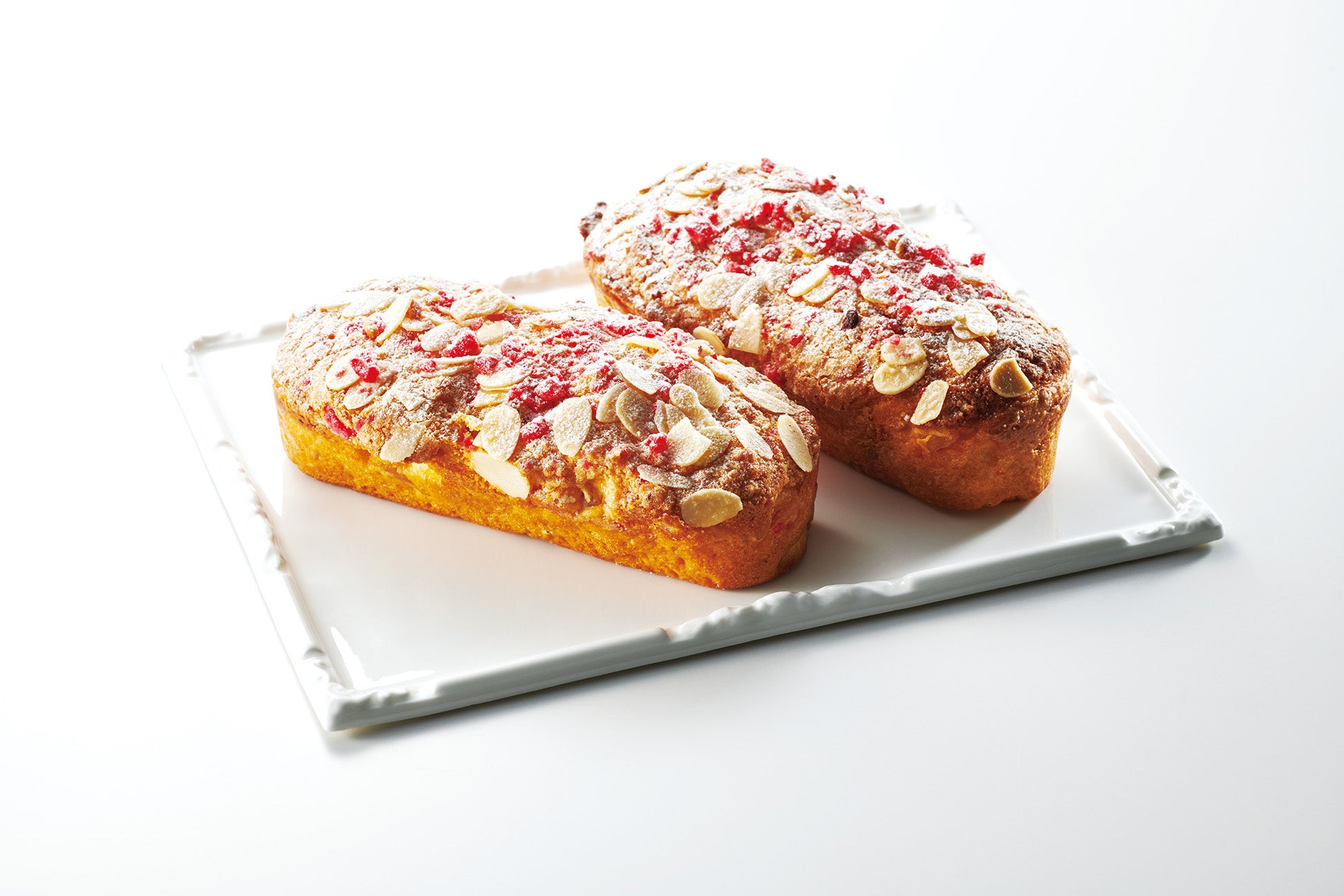 オレンジと洋酒に漬けたドライピーチの味わい広がるパネトーネにダマンドを絞りプラリネロゼで仕上げました。