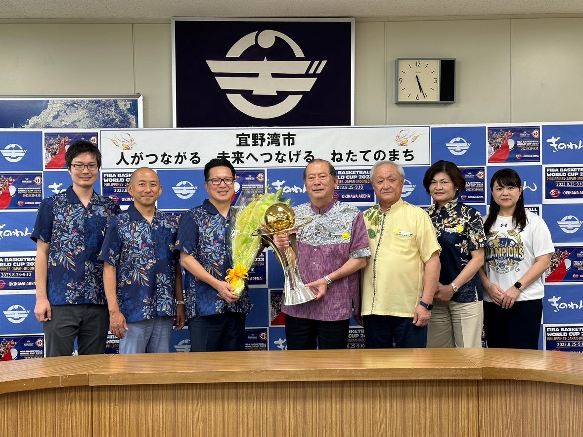 7月5日(水)に、松川正則宜野湾市長へBリーグ初優勝のご報告を兼ねた表敬訪問を行いました。表敬訪問では宜野湾市長からお祝いの花束を贈呈いただき、市役所の方々より多くのお祝いのお言葉をいただきました。