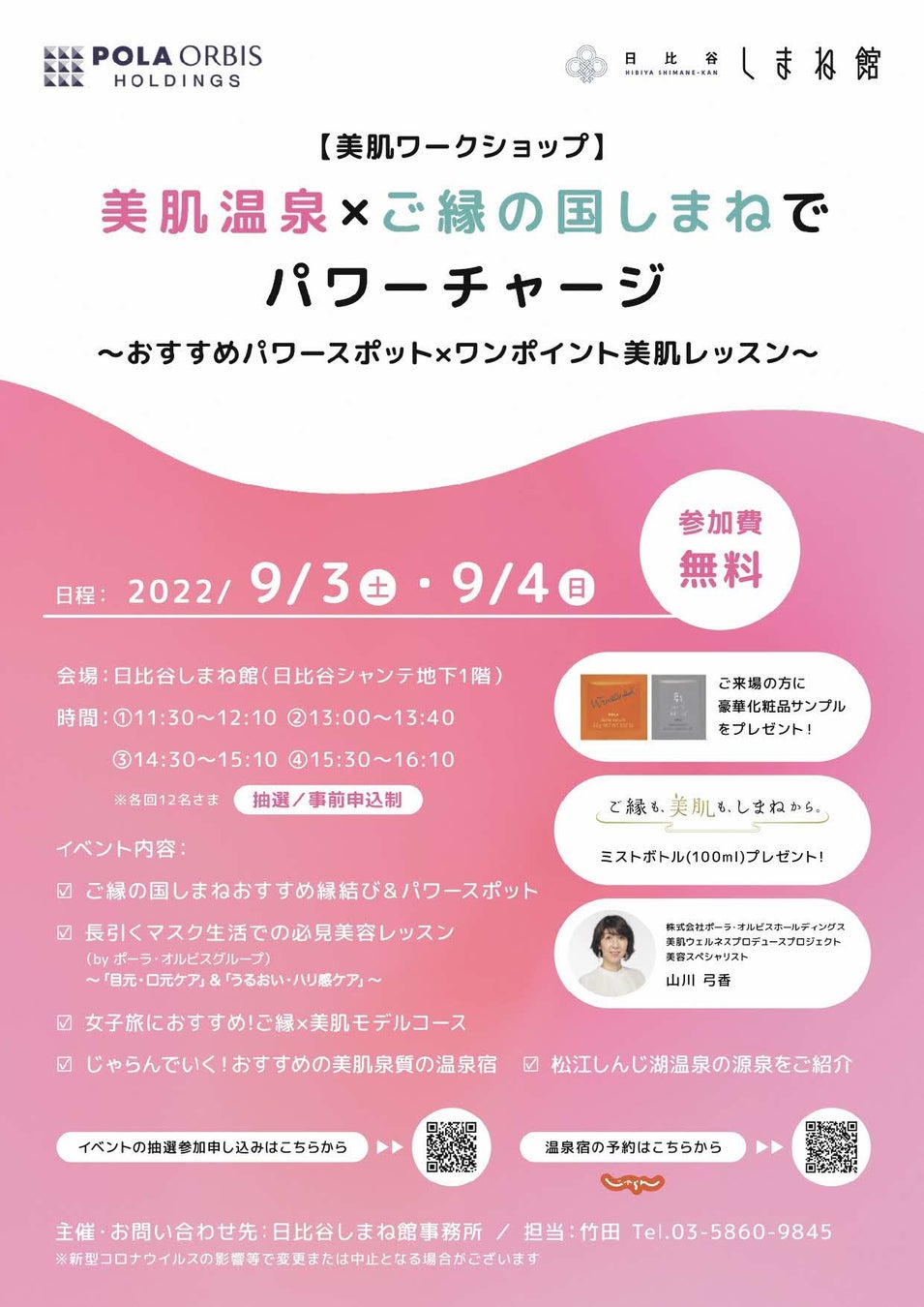 美肌宿プランをより多くの方にお伝えするため、日比谷しまね館で美肌ワークショップイベントを開催します。
