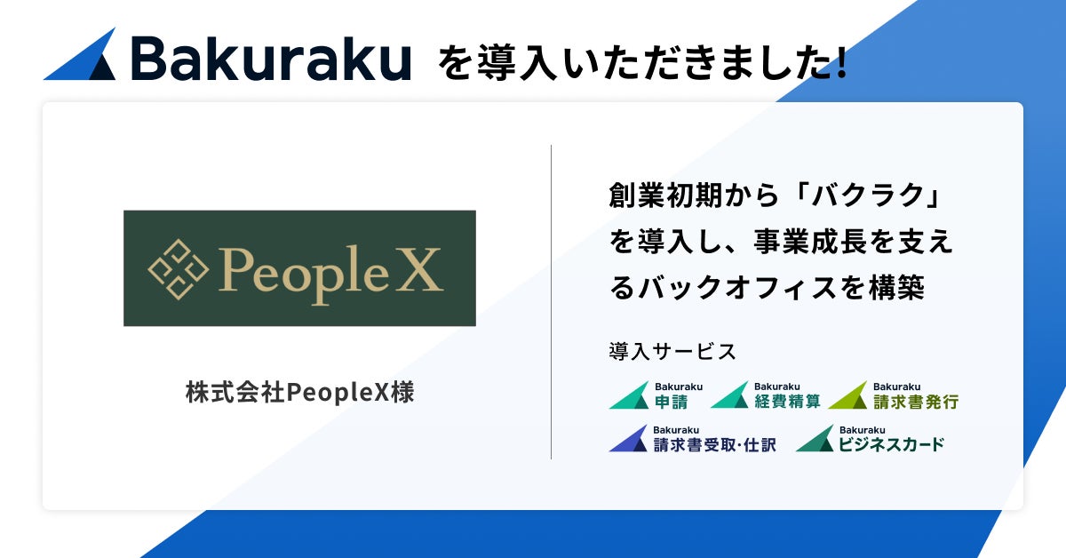 すべての経済活動のデジタル化を目指す株式会社LayerXは、業務効率化クラウドサービス「バクラク」シリーズが、株式会社PeopleX(代表取締役CEO 橘大地、以下 PeopleX)に導入されたことをお知らせします。