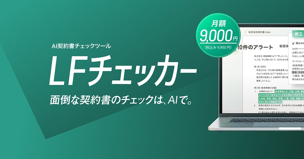 株式会社LegalOn Technologies(本社:東京都江東区 代表取締役執行役員CEO:角田望)は、2023年8月1日に法務省が公表した「AI等を用いた契約書等関連業務支援サービスの提供と弁護士法第72条との関係について」のガイドラインを踏まえ、これまでより多くの契約業務に課題を抱える企業をサポートすべく、AI契約審査プラットフォーム「LegalForce」から小規模企業者(従業員数20名以下)のビジネス推進をサポートする「LFチェッカー」を2023年9月4日(月)より、リリースいたします。本プロダクトは小規模企業者における契約業務の効率化を実現することを通して事業成長に貢献します。
