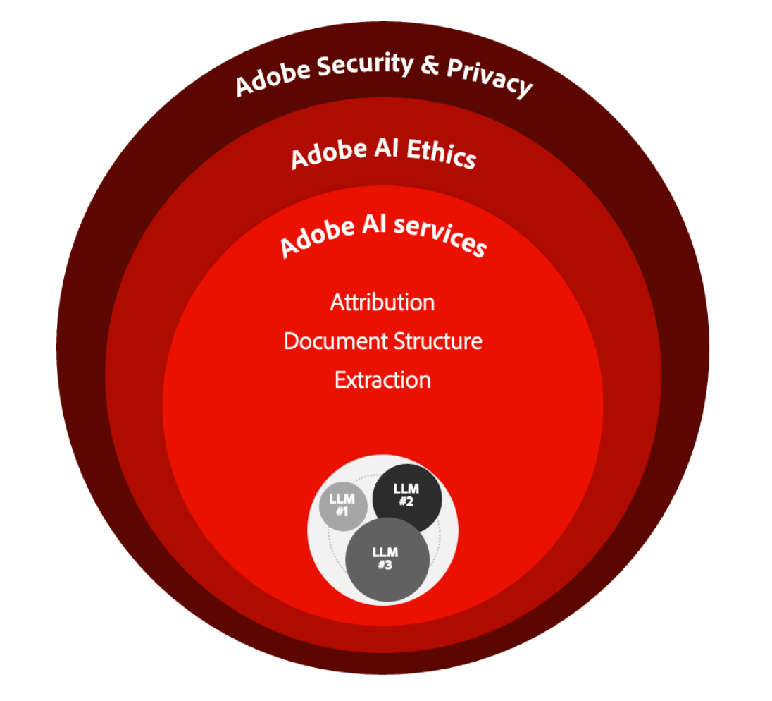 Acrobat ReaderとAcrobatのAI Assistant には、個人や大企業を含むすべてのお客様が安心して機能を使用できるよう、安全策を講じています。大企業のお客様には、エンタープライズグレードのセキュリティと情報ガバナンスをご利用いただけます。AI Assistant は、アドビの AI 倫理プロセスに沿って開発されています。アドビはAcrobat ReaderとAcrobatのAI Assistantの開発において、LLM 非依存のアプローチを採用し、顧客のさまざまなユースケースに対応する業界最高水準のテクノロジーを使用しています。アドビは、サードパーティのLLMがアドビの顧客データに関するトレーニングを行うことを禁止しています。