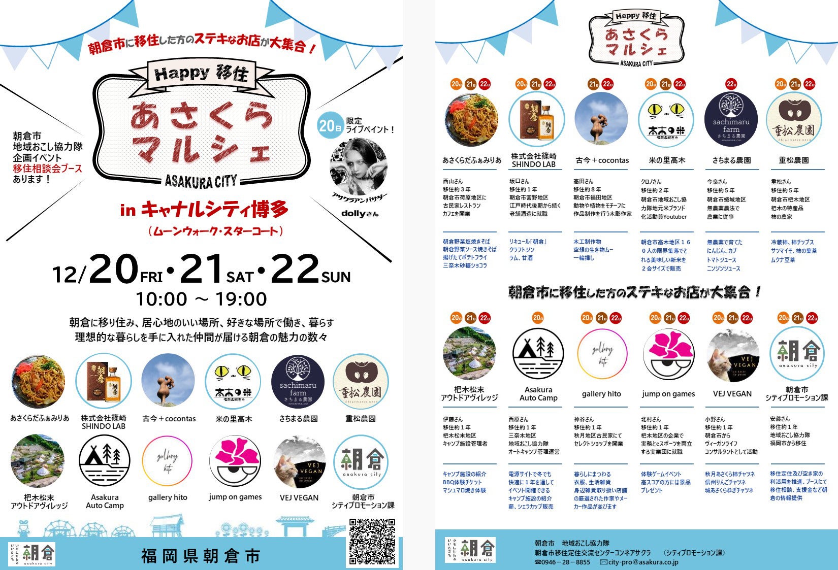 【福岡県朝倉市】12.20(金)~22(日) \Happy移住/ あさくらマルシェ in キャナルシティ博多を開催!