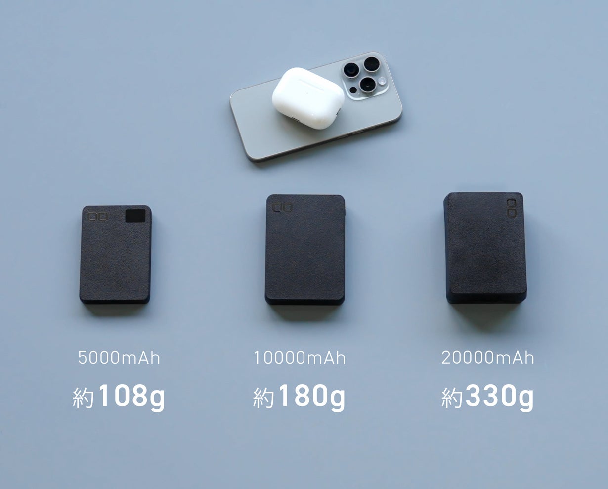 日常生活の中でもPCやタブレットを持ち出さないシーンで10,000mAhや20,000mAhのモバイルバッテリーを持ち出すのは、「正直、重い…」「毎日はさすがにツラい…」「ちょっと大げさ…」という声をユーザーから多くいただいたことから開発されたこの商品。