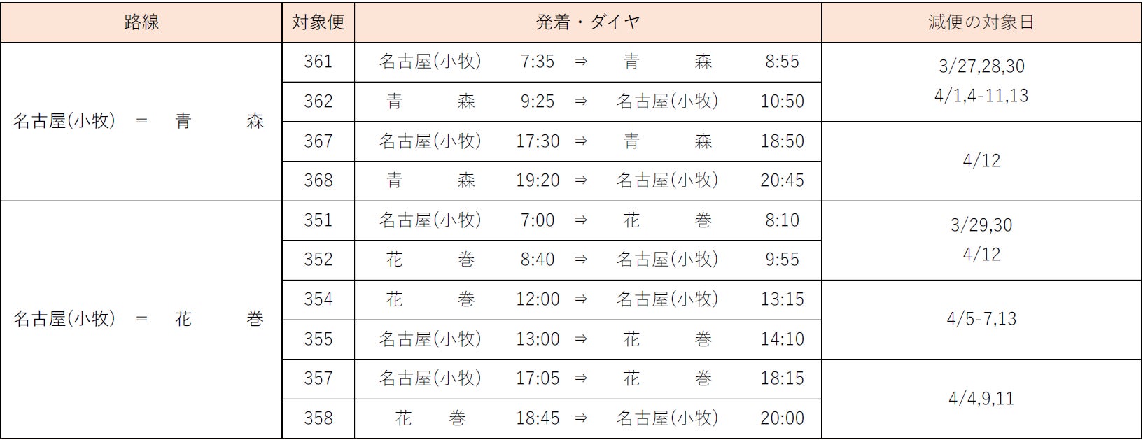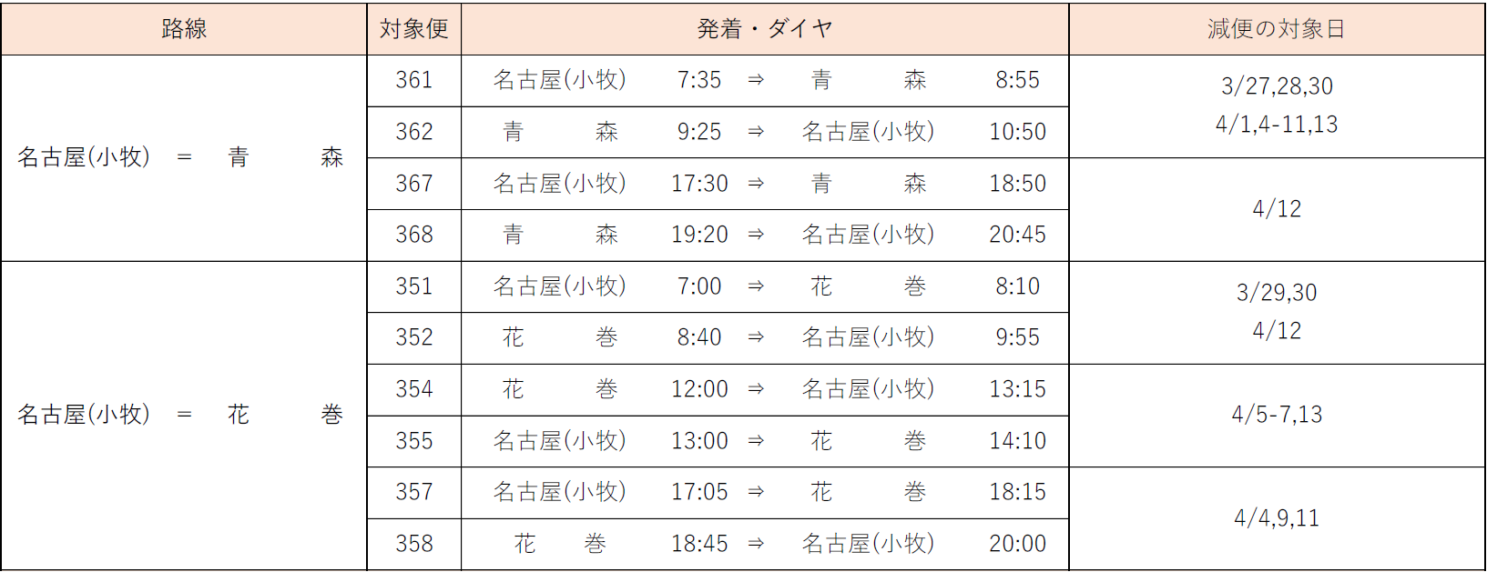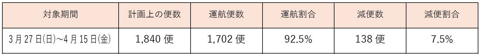 【3月27日(日)~4月15日(金)の運航路線・便について】