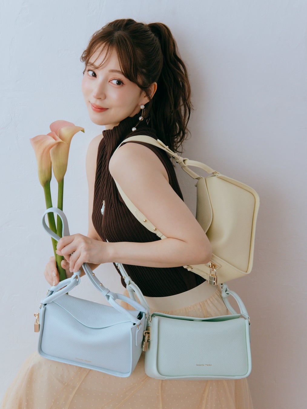 丸みのあるフォルムに、立体感のあるリボンモチーフをゴールド金具でデザイン。上品で女性らしい雰囲気を演出してくれます。ボクシーなシェイプが様々なシーンのスタイリングに対応。日々のスタイリング、特別な日のプラスアイテムとして合わせて欲しいシリーズです。