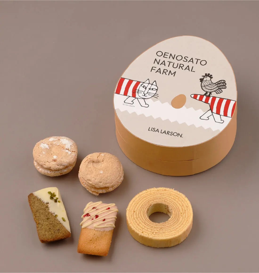 鳥取県八頭郡に位置する大江ノ郷自然牧場は、1994年からニワトリを自然本来の姿で平飼いで育てている牧場です。自然の中でのびのびと育ったニワトリの卵と国産素材の使用にこだわった牧場スイーツと、リサ・ラーソンのコラボレーションが実現しました!