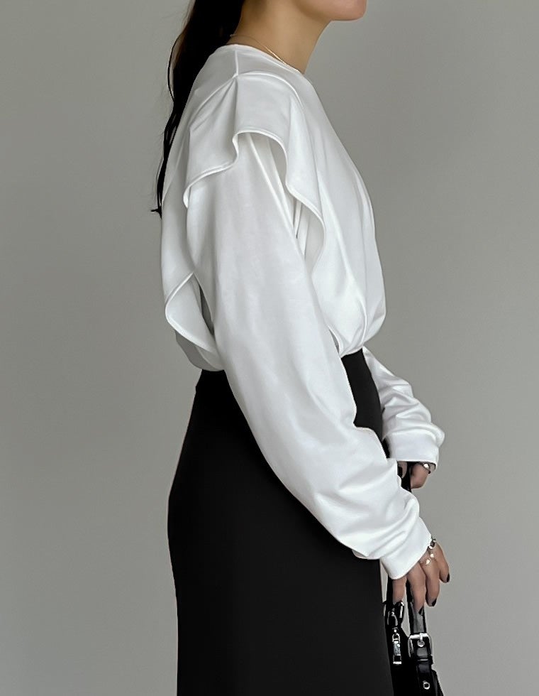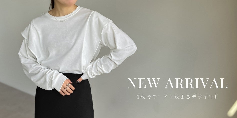 ショルダー部分にラッフルデザインを施したロングスリーブTシャツが登場!