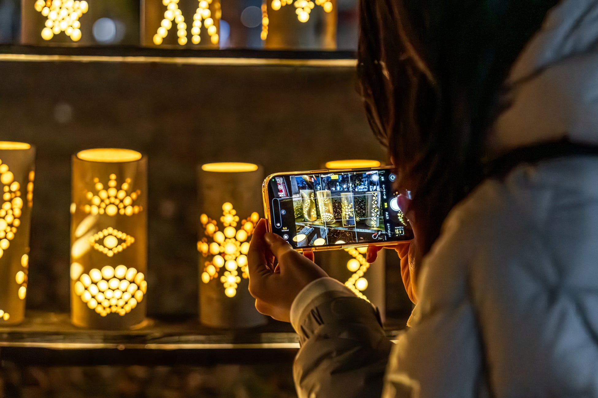 地元で親しまれている牛嶋神社での竹あかりライトアップイベントは今年で4年目、冬の風物詩となっており、竹あかりによる装飾や、投光器を活用した本社殿への光の演出を行います。また、東京スカイツリーをバックに宙に浮かんでいるように見える竹毬は、お勧めの撮影スポットです。