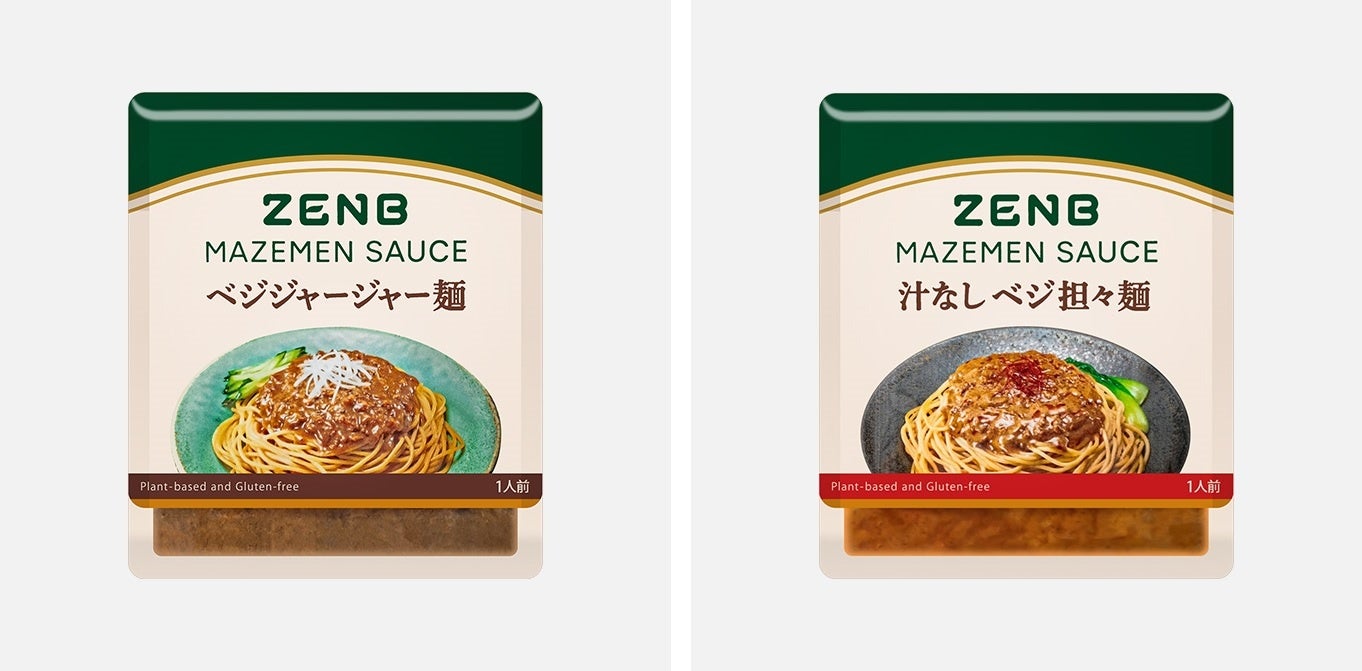 きのこなど野菜の旨みを活かしたプラントベースのZENBまぜ麺ソース「ベジジャージャー麺」「汁なしベジ担々麺」2種が新登場