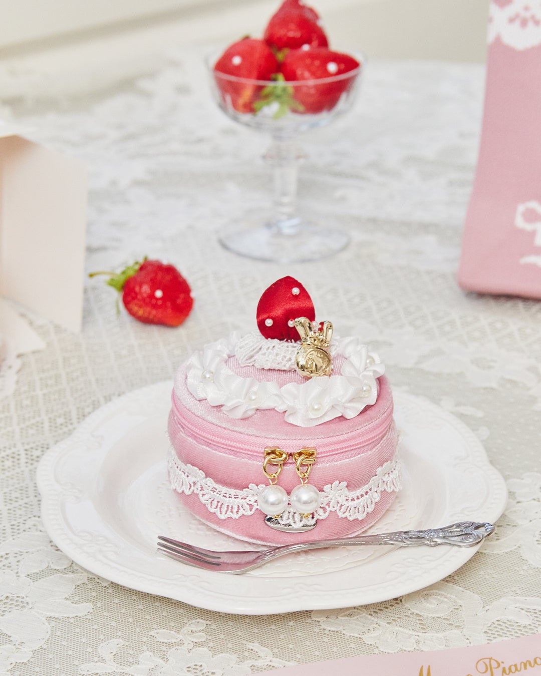 きらめくピンクカラーがとびきり可愛い、ケーキ型アクセサリーケース。