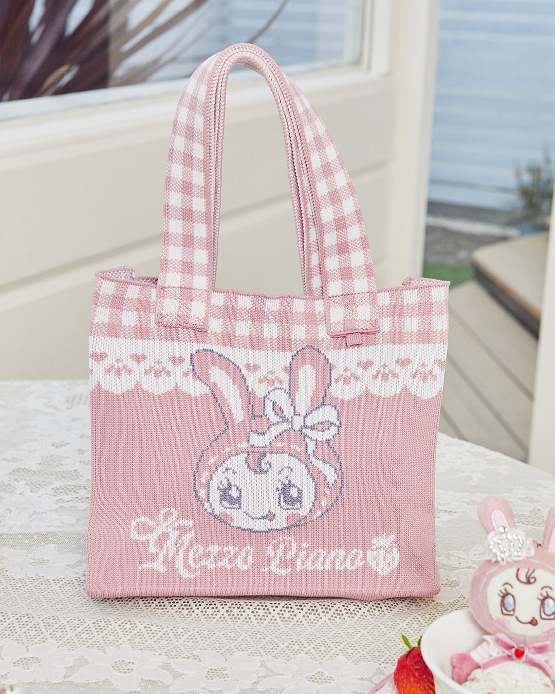 今回のコレクション限定デザインのベリエちゃんをあしらったジャカードニットバッグ。