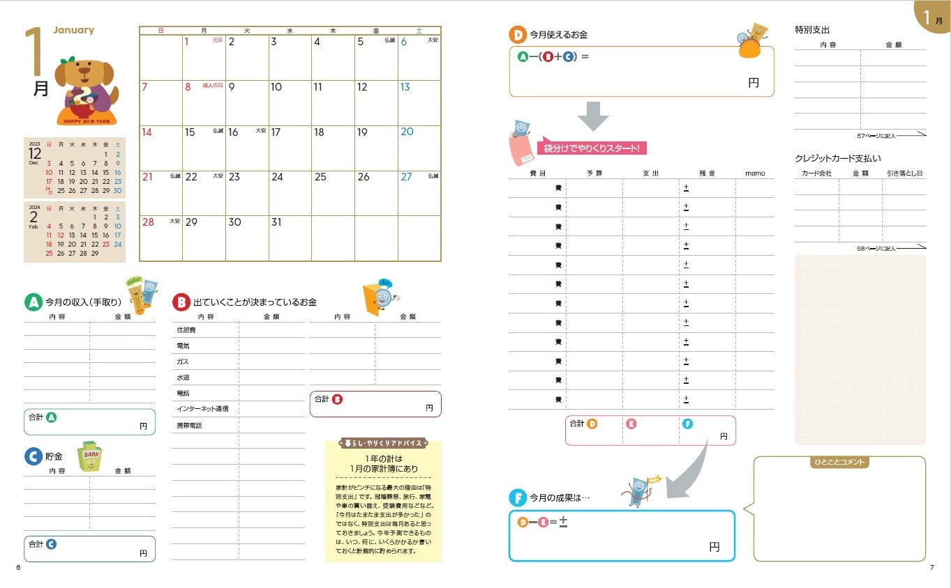 人気のファイナンシャルプランナー・山口京子さんによる「暮らし・やりくりアドバイスが12カ月分、2024年の新NISA開始に向けてのマネーコラムも必読です。