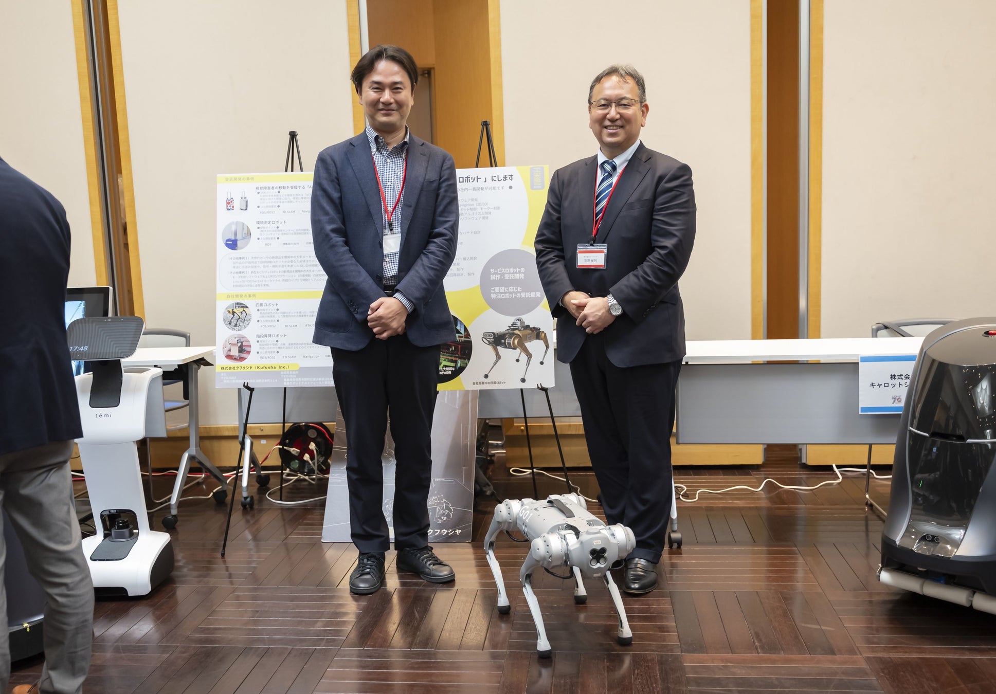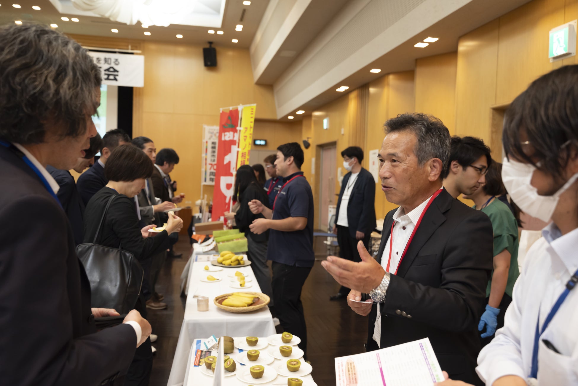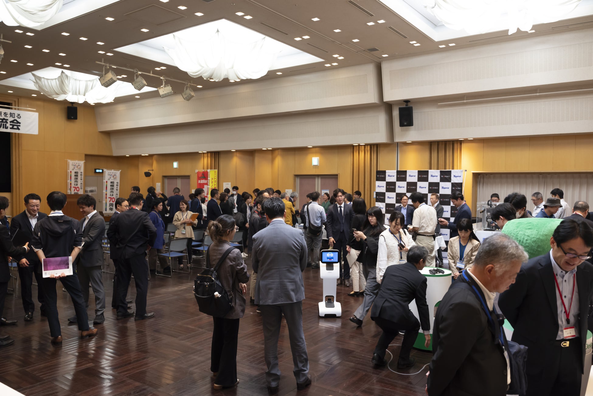 各社プレゼンテーションの後はフリー歓談タイム。興味を持ったブースでコミュニケーションを図る方、絶品の特産品に舌鼓を打つ方、めったに見られない7社ものロボットデモンストレーションを楽しむ方等、ゲストの皆さんは思い思いにブースを回遊し、参加事業者とも交流を深めていただきました。