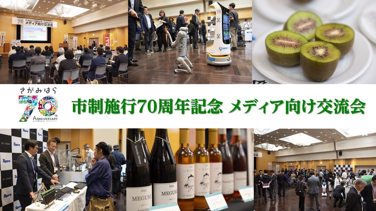 今回の交流会は、令和6年11月20日(水)に相模原市が市制施行70周年を迎えることを機に実施したもので、本市ふるさと納税返礼品提供事業者4社、特産品生産者1社、さがみはらロボットビジネス協議会会員7社の協力を得て開催。招待メディア関係者34名のご参加をいただきました。