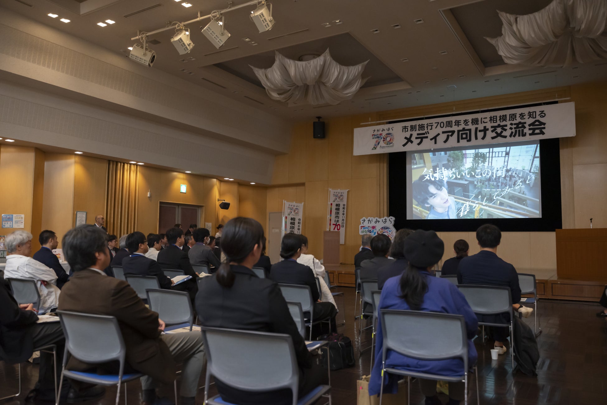 そして今年10月9日(水)、初の市内開催となる「市制施行70周年記念 メディア向け交流会」を、橋本駅近くの「ソレイユさがみ」にて開催しました。