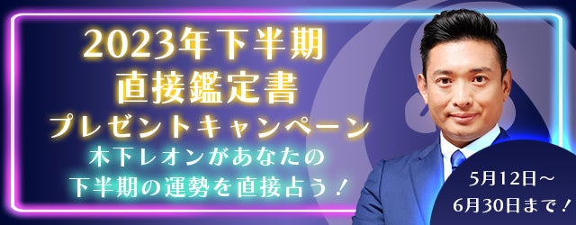 ※「2023年下半期 直接鑑定書プレゼントキャンペーン」にご参加いただくには、公式サイト『木下レオンの占い』(https://kinoshita-reon.jp)への会員登録が必要です。(月額330円)