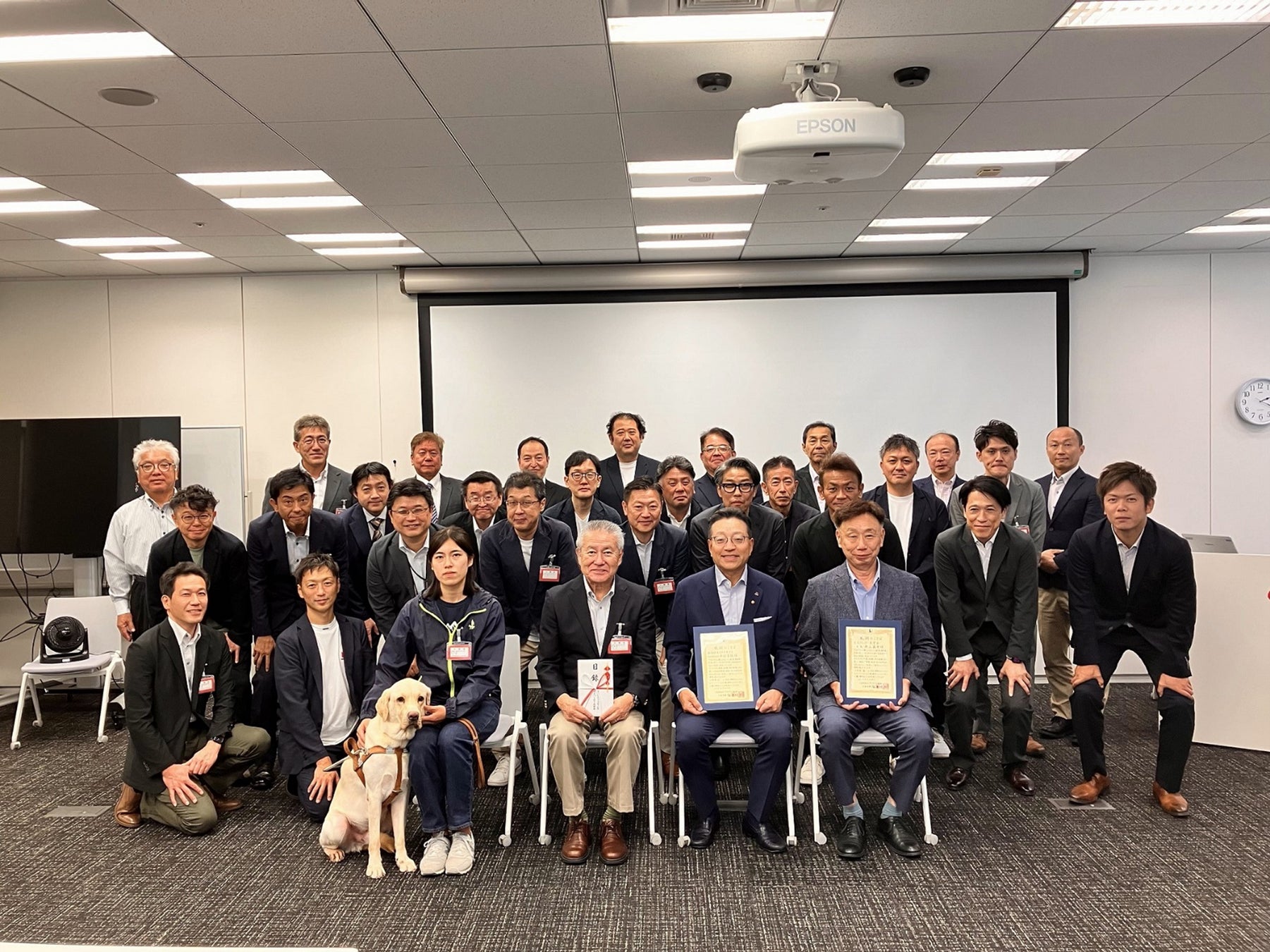 モスバーガーを展開する株式会社モスフードサービス(代表取締役社長:中村 栄輔、本社:東京都品川区)では、2024年9月25日、盲導犬の育成訓練などを行う公益財団法人アイメイト協会( https://www.eyemate.org/ )の塩屋隆男代表理事とアイメイト(盲導犬)をモス本社にお迎えし、「愛のモスボックス贈呈式」を行いました。