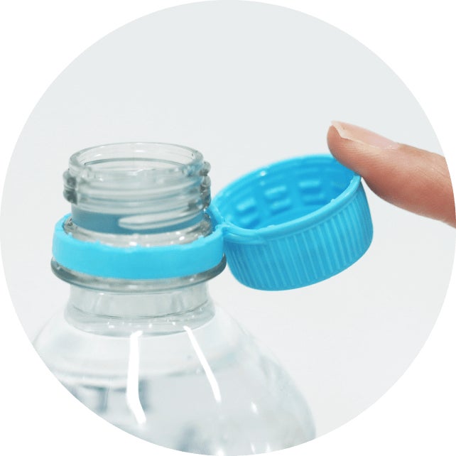フロムアクアのキャップは「落ちないキャップ」。朝、電車に乗る前に買われ、移動中に飲まれる方が多いことや、また、キャップを落とした経験がある方が多いことから、国内で初めて採用しました。