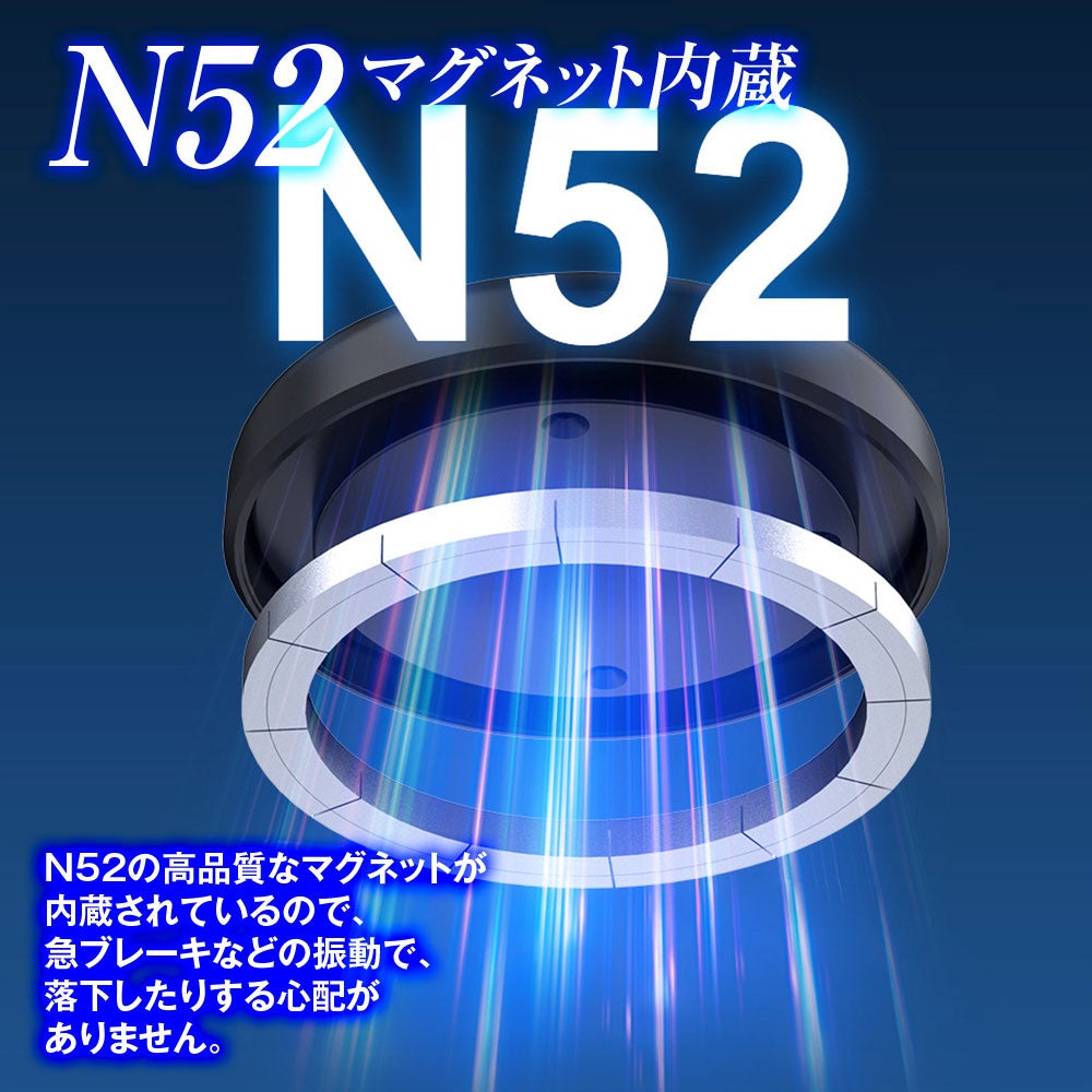 N52の高品質なマグネットが内蔵されているので、急ブレーキなどの振動で落下したりする心配がありません。