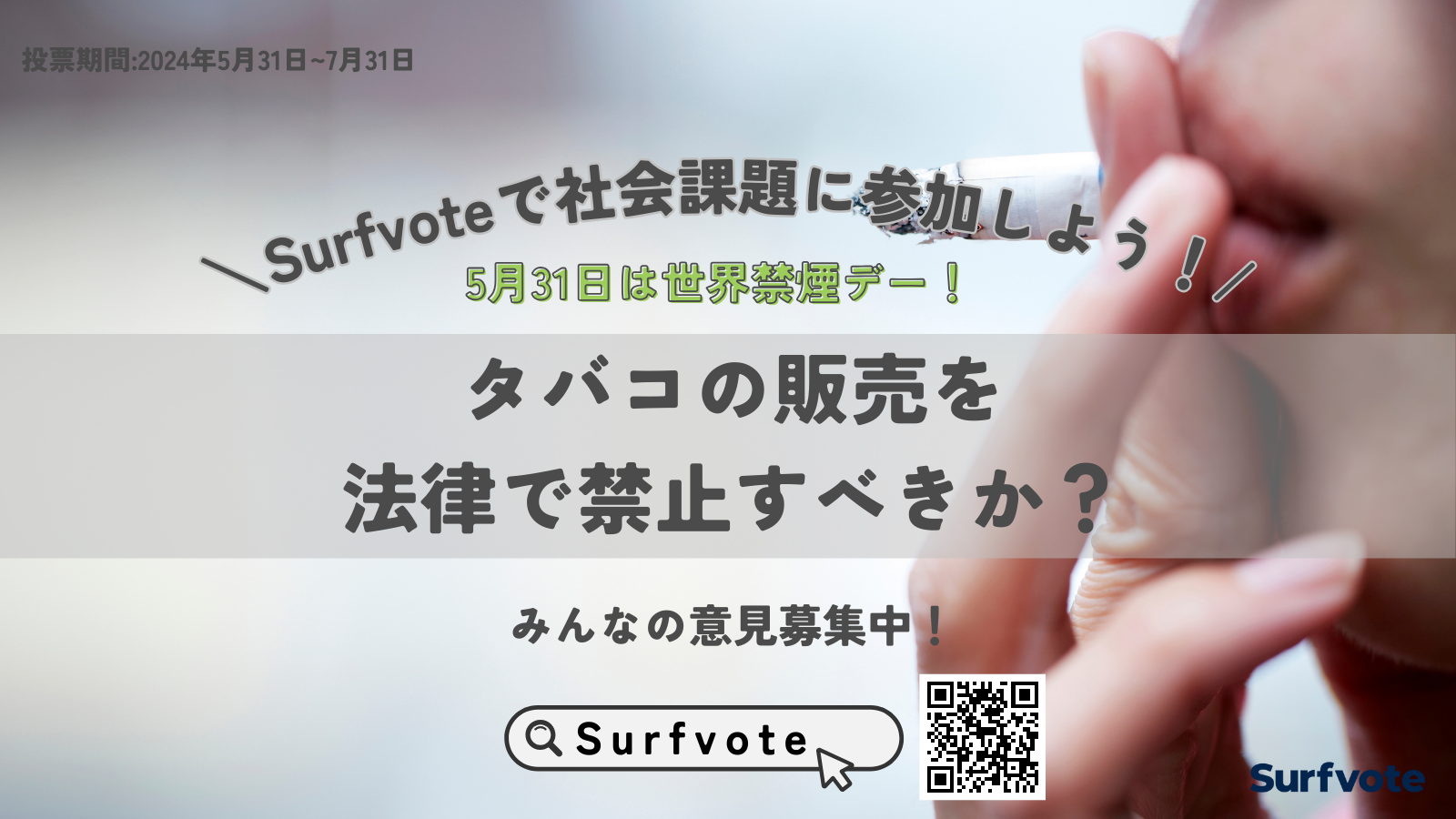 【5月31日は世界禁煙デー!】タバコの販売を法律で禁止すべきか?