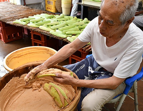 高槻市特産「服部越瓜(しろうり)」の漬け込み作業が最盛期