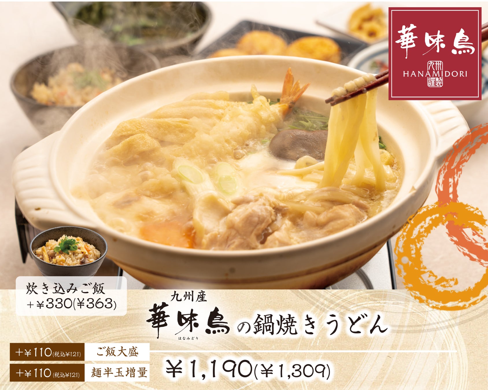 華味鳥を使用した鍋焼きうどんに名物玉子焼のセットを期間限定発売&その場でお食事券が30名様に当たるXキャンペーン実施!