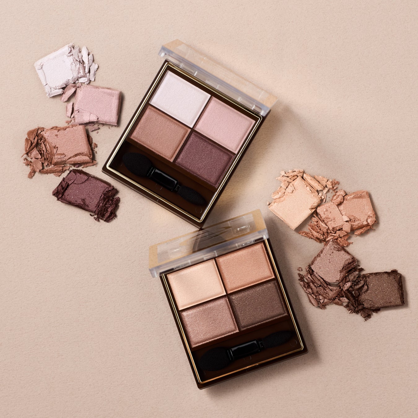 肌なじみのよいブラウン~ベージュ系の色だけで作った4色パレットのアイシャドウ。