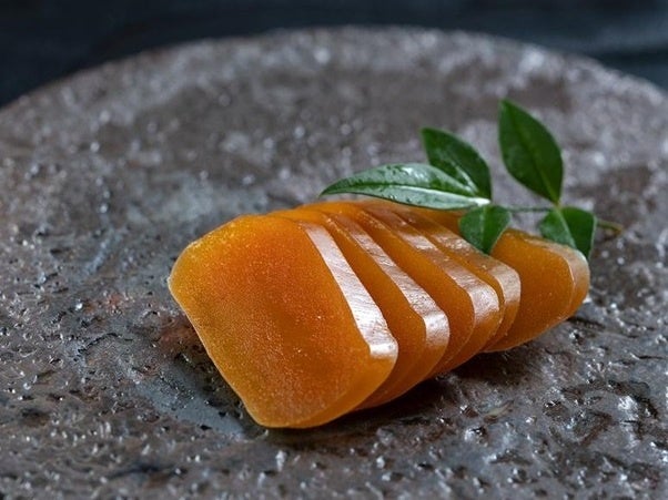 完成したカラスミは、そのまま薄切りはもちろんのこと、軽く炙って香りを立たせても美味しいです。大根やチーズと合わせてワインのつまみなど、和洋問わず楽しめ、おせち料理の華やぎにもぴったりです。
