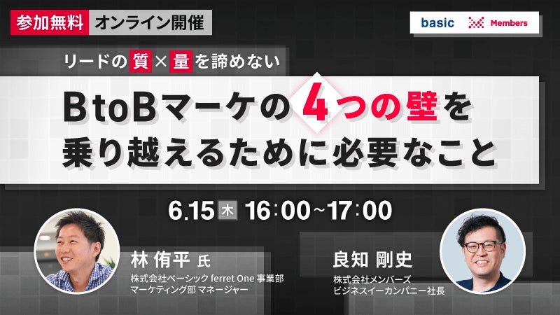 ベーシック、6/15(木)16時よりメンバーズ社主催のセミナー「BtoBマーケの4つの壁を乗り越えるために必要なこと」に登壇